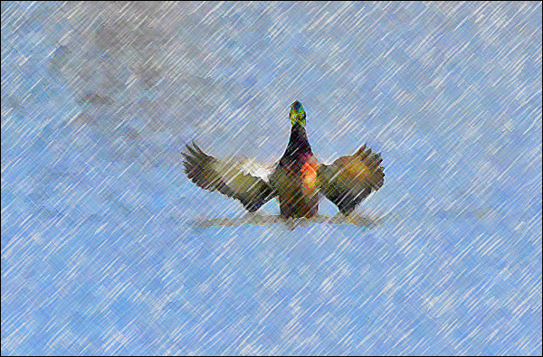 digital camera pictures quickly and easily. After this Photoshop Class, you will be familiar with the basics of Photoshop and be more than ready to start using your artistic imagination on your pictures, as with the photograph at the bottom of this page, of a Mallard in a sudden storm.